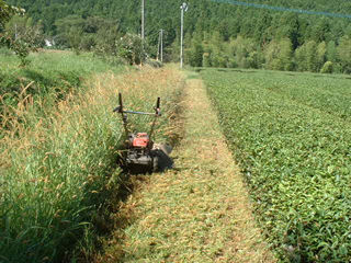 肥料散布の前には仕事をやりやすいように茶園の周りの除草を行います。