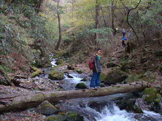 この丸木橋を渡ってからが傾斜がきつくなり大変でした。