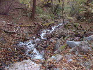 急な傾斜を生まれでたばかりの清流が流れてます。